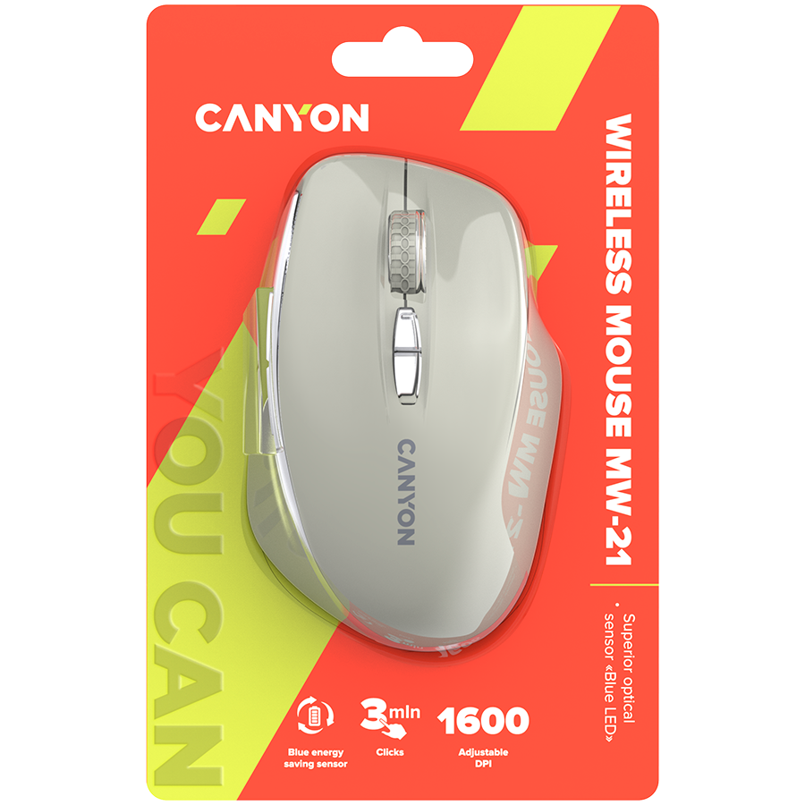 One of the most successful solutions among all Canyon PC accessories! Due to the improved LED sensor with «Blue LED» technology, this mouse works much more accurately than any other mouse of this class, and with power saving technology, it increases the operating time by 20% from a single AA battery. Wireless 2.4 GHz USB receiver allows you to maintain a high-quality connection without cluttering the workplace with unnecessary wires. 7 durable buttons and 3 DPI switching levels ensure optimal operating functionality. The monolithic, ergonomic right-handed design and durable UV Matt covering and Rubber Coating make the mouse a decent everyday companion.