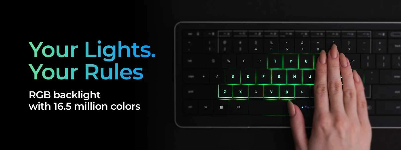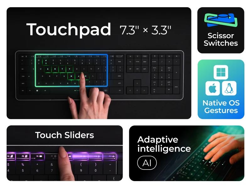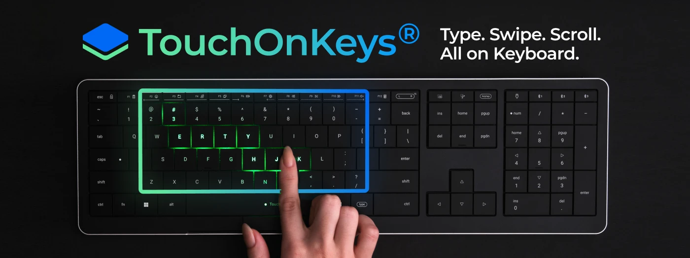 S ugrađenom dodirnom površinom, tipkovnica omogućuje klizanje, pomicanje i navigaciju bez podizanja ruke.