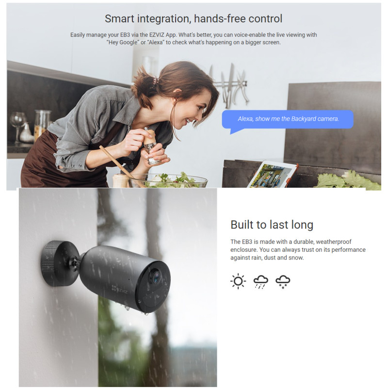– The EZVIZ EB3 is an extremely easy-to-use outdoor security camera functioned with crystal clear 2K resolution and more