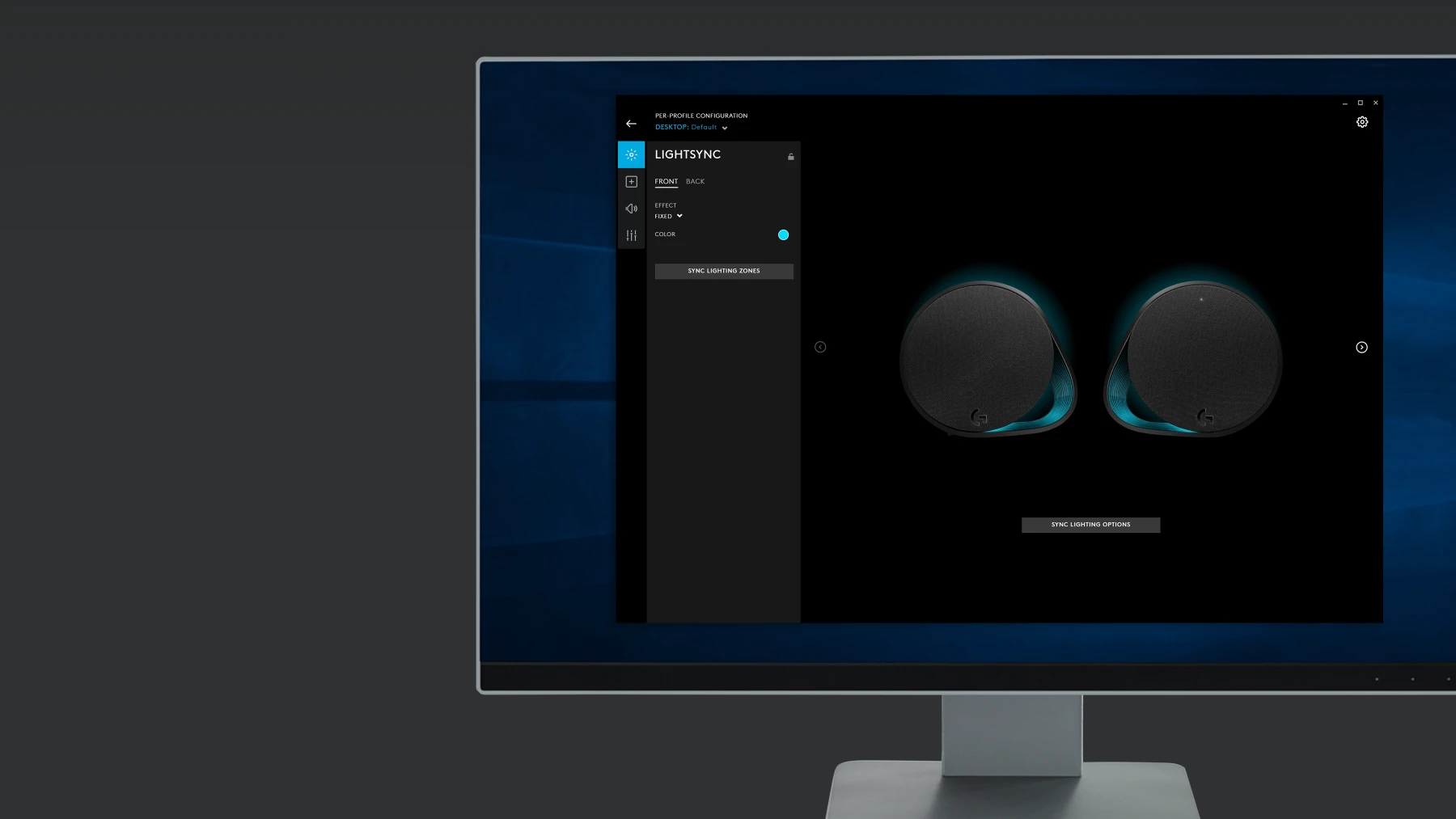 Choose any area on your monitor and assign it to any of the four lighting zones via Logitech G HUB. Choose any part of the screen and assign to any of the 4 areas: left and right, front and back. LIGHTSYNC engine reads the pixels’ colors on screen and matches the color dynamically to your speakers in real-time. The result is stunning environmental lighting that immersing your room into the experience.