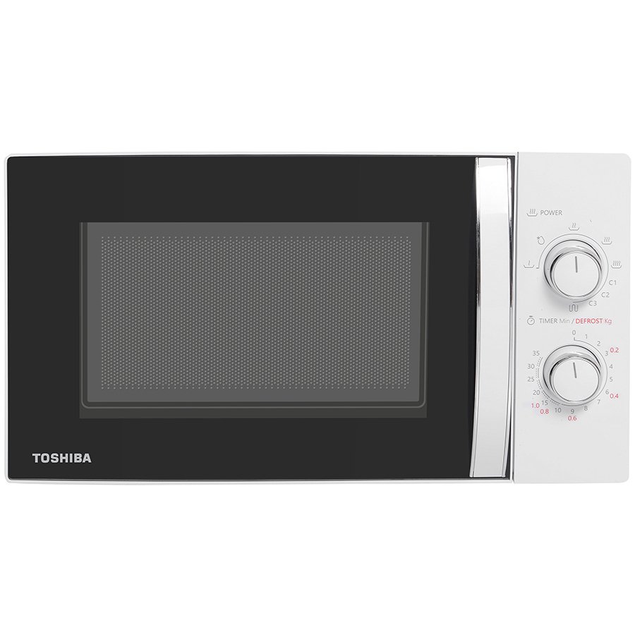 Toshiba MW2-AG23P(WH) 3-in-1 Microwave Oven with Grill and Combination Hob, 23 Litres, Rotating Plate with Storage, Timer, Built-in LED Lights, 900 W, Grill 1050 W, Pizza Programme, White Size: 485 x 403 x 296