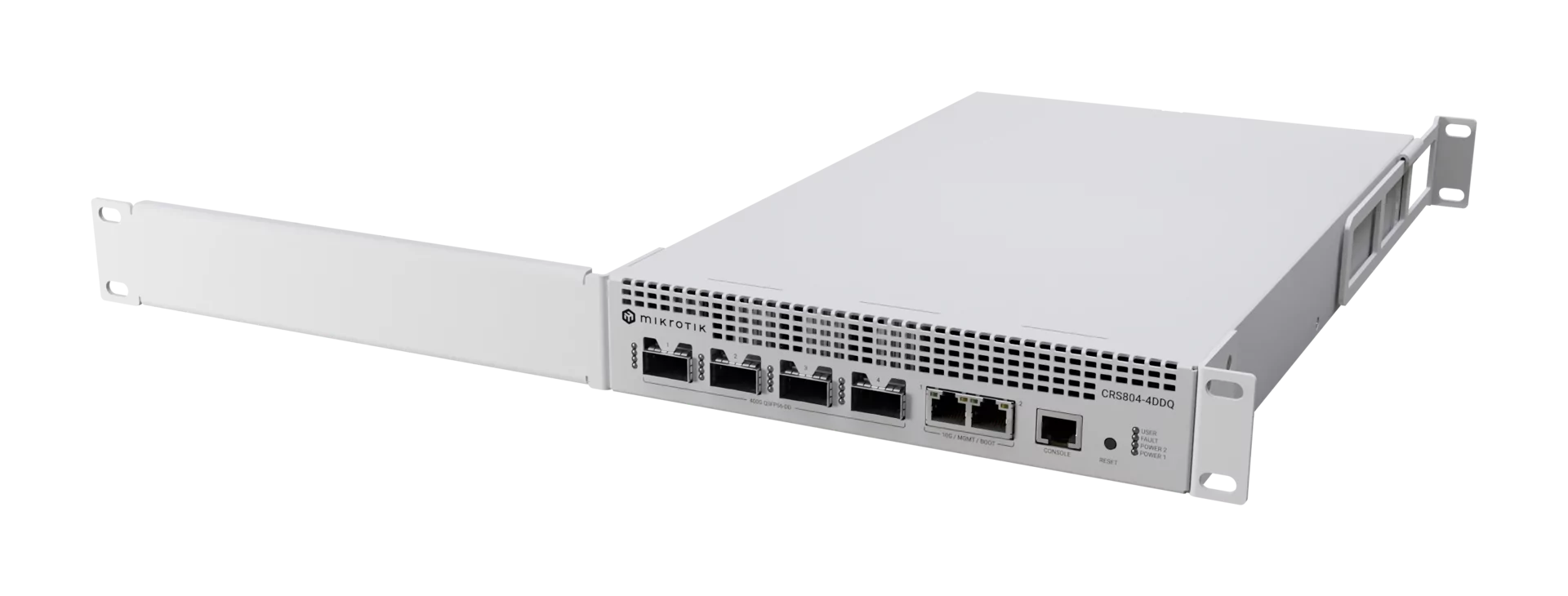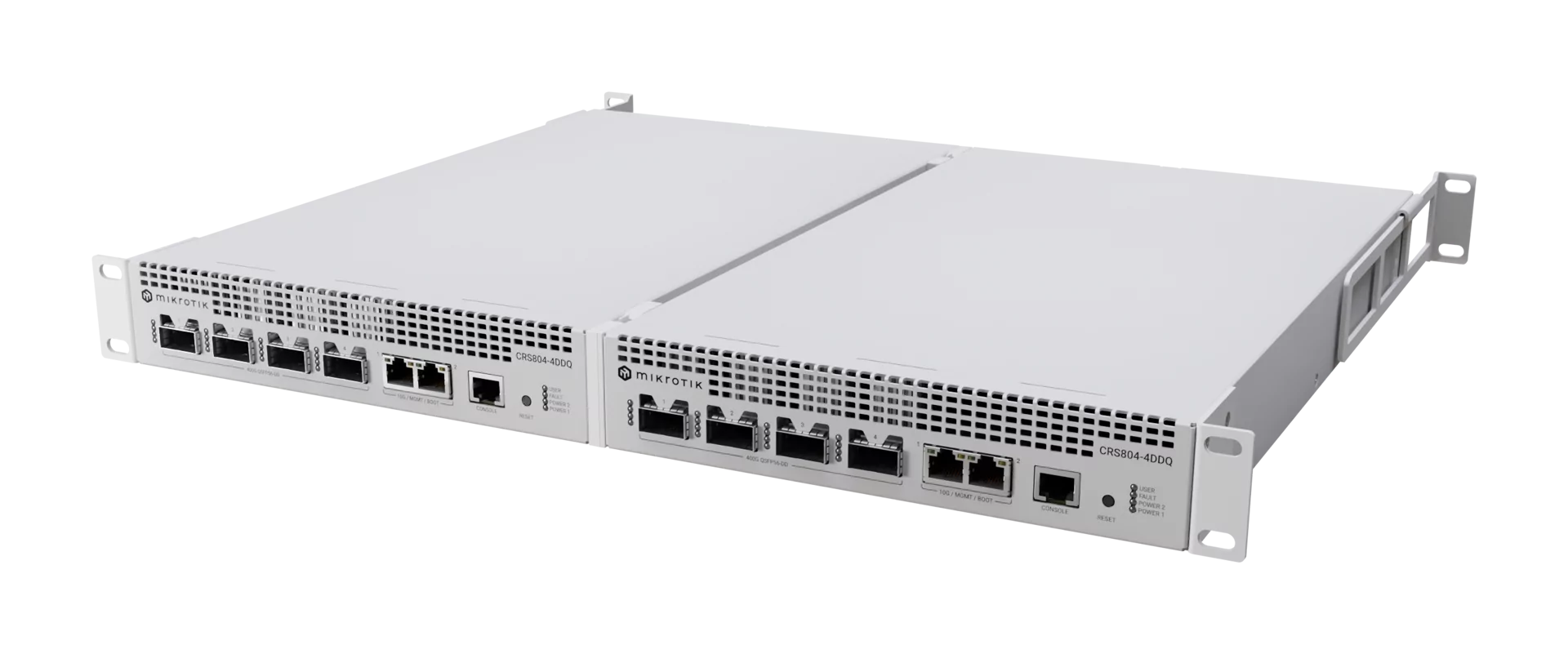 CRS804 DDQ je kompaktan i pouzdan 400 Gigabitni switch dizajniran za moderne AI zadatke i nadogradnje mreže sljedeće generacije. S četiri 400G QSFP-DD porta i dvostrukim 1/10G Ethernet portom, pruža iznimnu gustoću propusnosti u tihoj i učinkovitoj 1U formi.