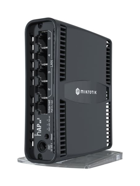 MikroTik RouterBOARD C52iG-5HaxD2HaxD-TC, hAP ax2 small home of office router. WiFi 6 AP 802.11ax Wave2, Dual-Band, Dual-Chain Wireless 4-4.5 dBi, 5 x GbE RJ45 Ports, 1 x PoE-In Out Port. Powerful Quad-Core ARM CPU. 574 Mbps @ 2,4 GHz 2×2 MIMO, 1200 Mbps @ 5 GHz 2×2 MIMO.