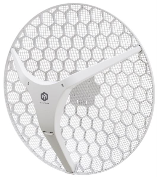 MikroTik RouterBOARD LHG-5axD-XL, LHG XL 5 ax – The LHG XL 5 ax is a lightweight wireless device with Wi-Fi 6 support for the 5 GHz band, featuring an integrated 27 dBi high-gain grid antenna that ensures excellent wind resistance. It is ideal for point-to-point links or as a client unit for long-distance connections. The unit is equipped with a Gigabit Ethernet port that supports passive PoE power supply in the range of 12 28 V