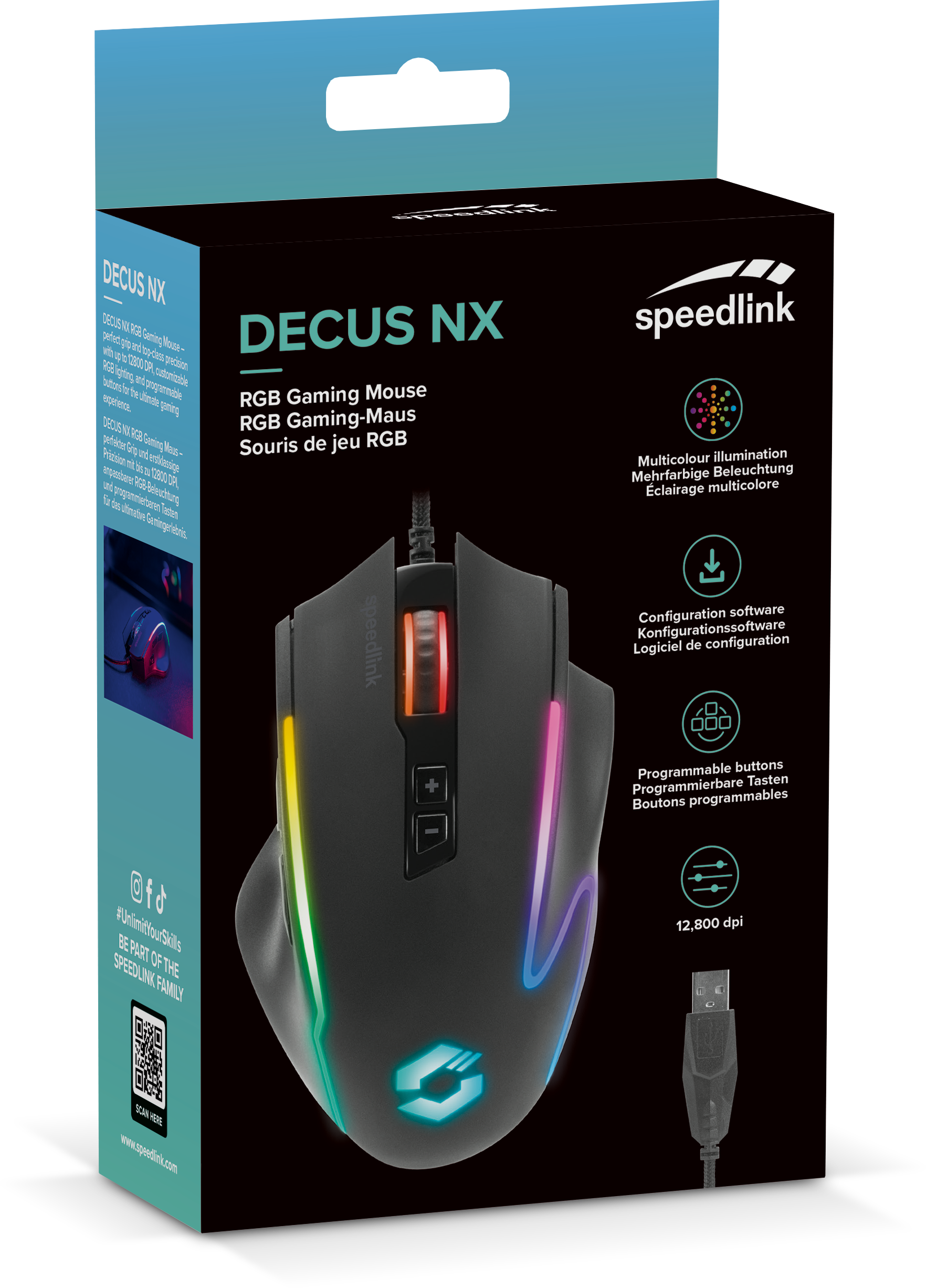 Miš SPEEDLINK Decus NX, RGB, žični, 12.800 DPI, gumeni, crni