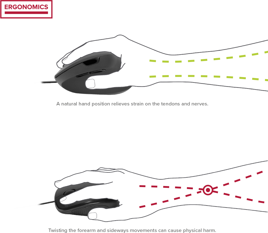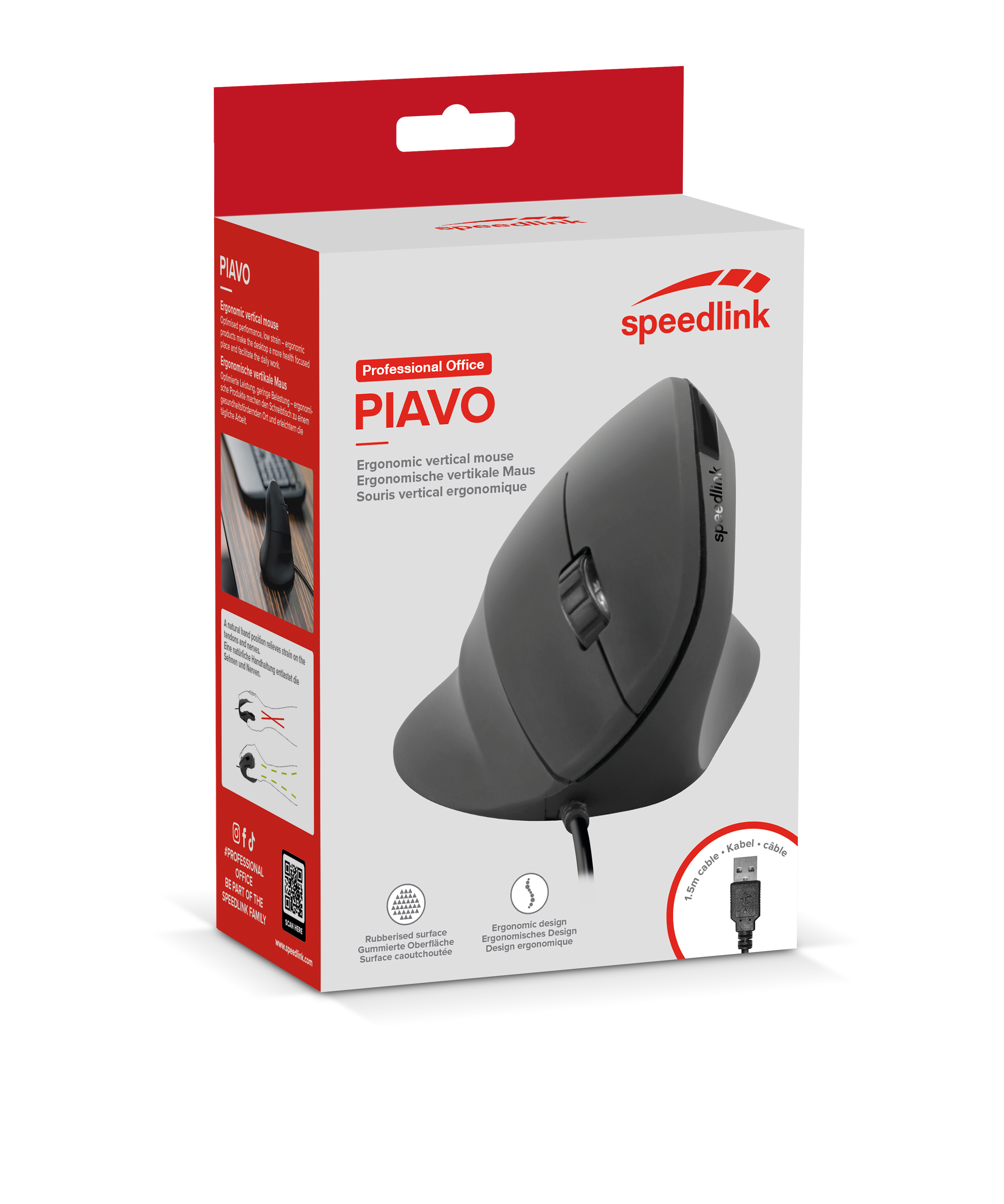 Stručnjaci preporučuju ergonomski optimizirane miševe jer izbjegavaju dugotrajni stres uzrokovan ponavljajućim pokretima na poslu i mogu spriječiti probleme s držanjem u ramenima i vratu. S okomitim mišem kao što je PIAVO Vertical Mouse, zglob ostaje u opuštenom, prirodnom položaju i ne treba ga rotirati, tako da su tetive zaštićene, a šaka i ruka osjetno rasterećene. Korištenje postaje ugodno i prije svega zdravo iskustvo. S 5 gumba i dpi prekidačem za podesivu rezoluciju senzora, također ste dobro opremljeni za sve zadatke na računalu.
