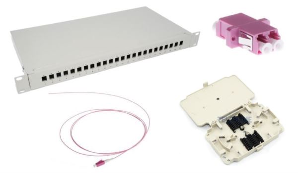 NFO Patch Panel 1U 19″ Closed – SET Multimode 24x LC OM4 Duplex Adapter, 48x LC OM4 Pigtails, 2x Splice trays