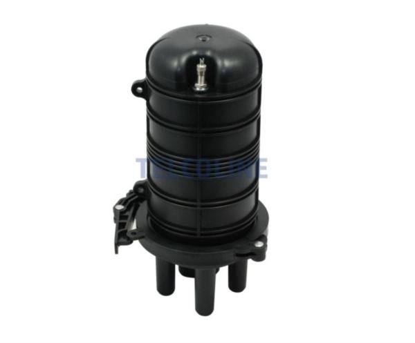 NFO Splice Closure 3 round entries, 1 oval, 4 trays, Height 300 mm – Diameter of the hood: 120 mm Case material: Polypropylene (PP) Number of trays optical fiber cassettes: 4 Maximum number of welds: 48 (4×12) Number of ports: 4 (3 round 1 oval) Internal diameter of round ports: 17 mm Dimensions of oval port: 27×44 mm Working temperature: – 40 C 65 C Tightness class: IP68 Equipment: Trays: 4, Cable port seals, Wall mounting bracket, Insulation tape, Splice covers: 48, Tags The design and additional accessories allow the device to be installed in overhead, earth and sewage installations.