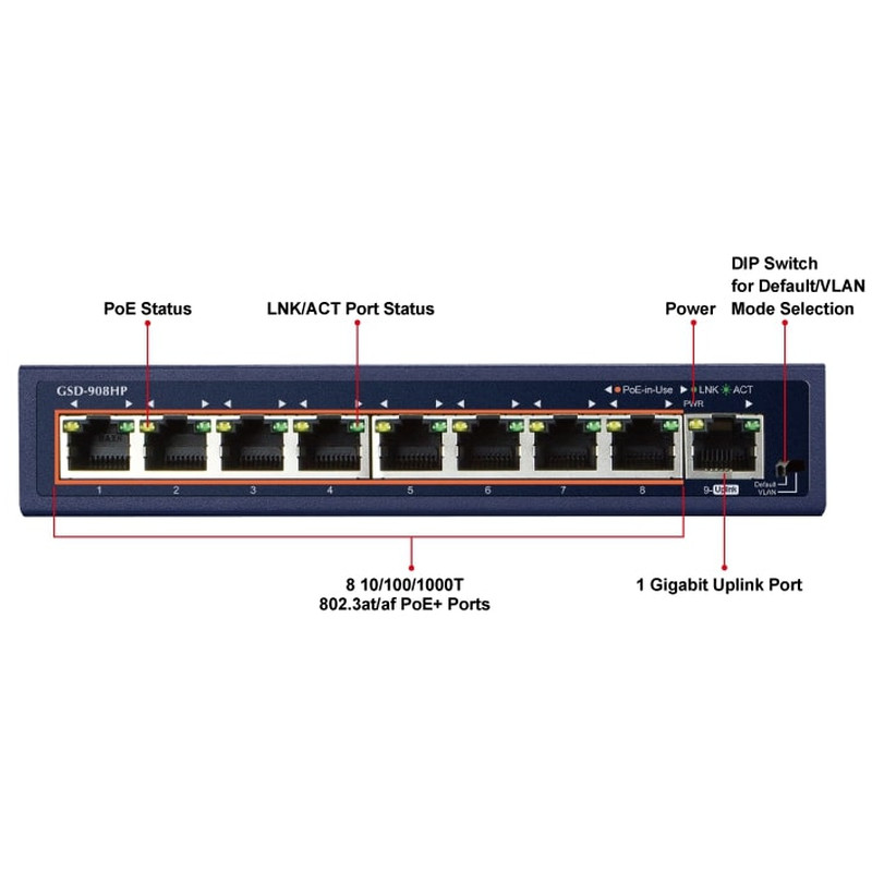 – PoE Inject Port: 8-Port with 802.3af/802.3at PoE injector function