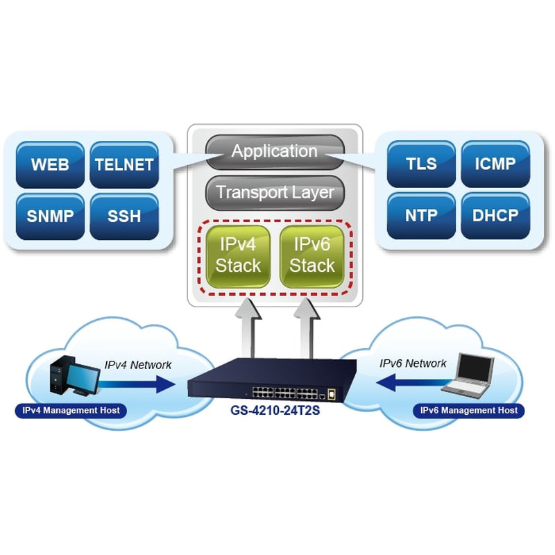 PLANET IPv4/IPv6, 24-Port 10/100/1000Base-T + 2-Port 100/1000MBPS SFP L2/L4 SNMP Manageable Gigabit Ethernet Switch