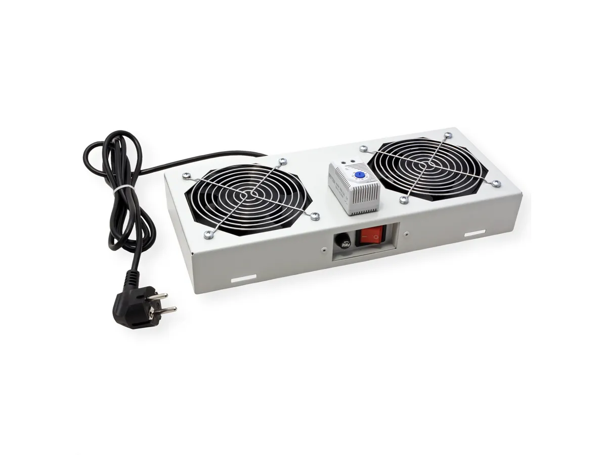 Roline 19″ krovni ventilacijski modul s 2 ventilatora i termostatom, sivi