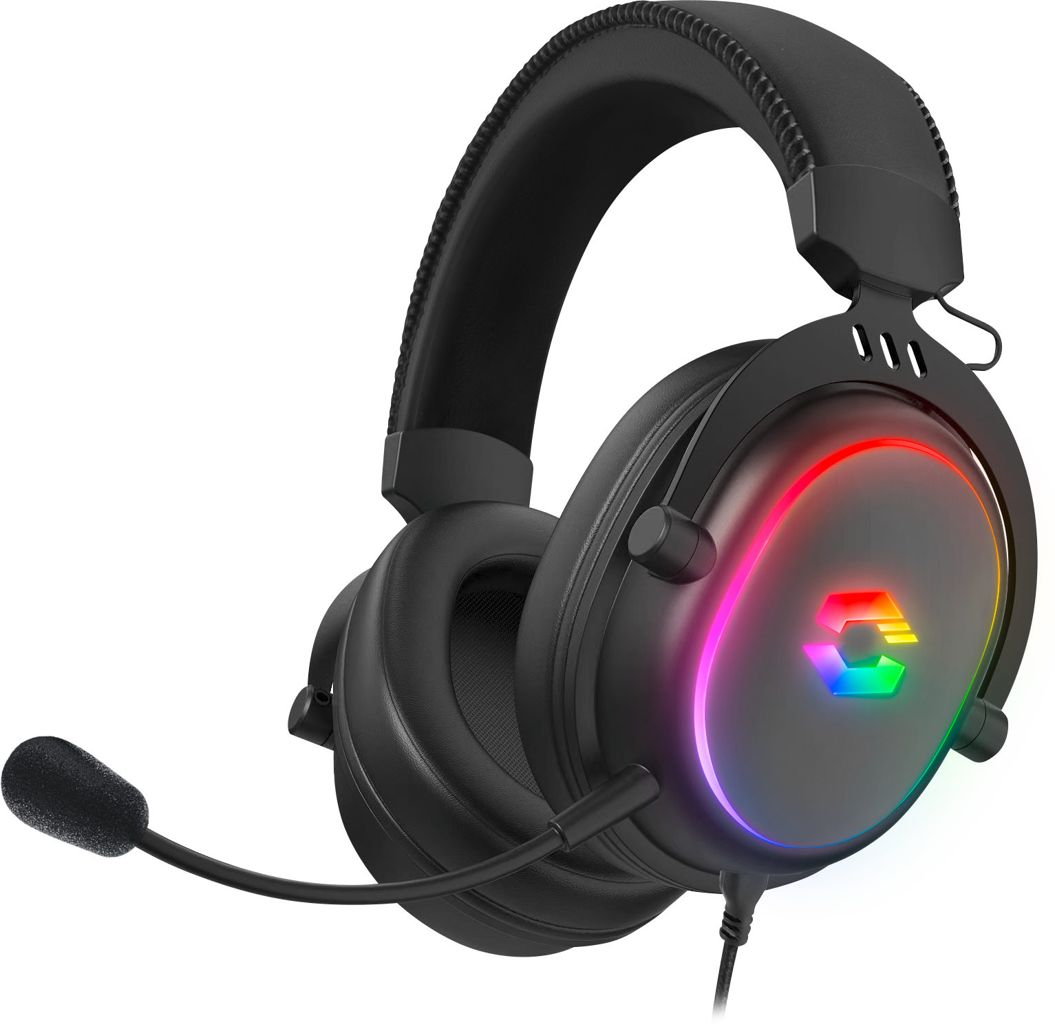 CONUX RGB Stereo Headset savršen je suputnik za sve entuzijaste videoigara koji traže snažan zvuk, udobnost i široku kompatibilnost. Zahvaljujući snažnim 50 mm pogonskim jedinicama, vjerno reproducira svaki detalj – od dubokih basova do visokih tonova – pružajući kristalno čisto audio iskustvo. Višebojno RGB osvjetljenje dodatno obogaćuje ugođaj i estetiku igraće postave.