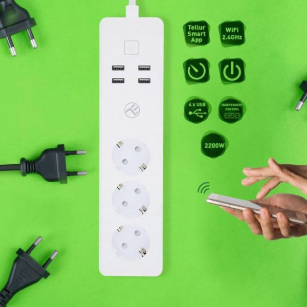 TELLUR PRODUŽNI KABEL 10A 3-PORTA+4xUSB, WIFI, 1.8m