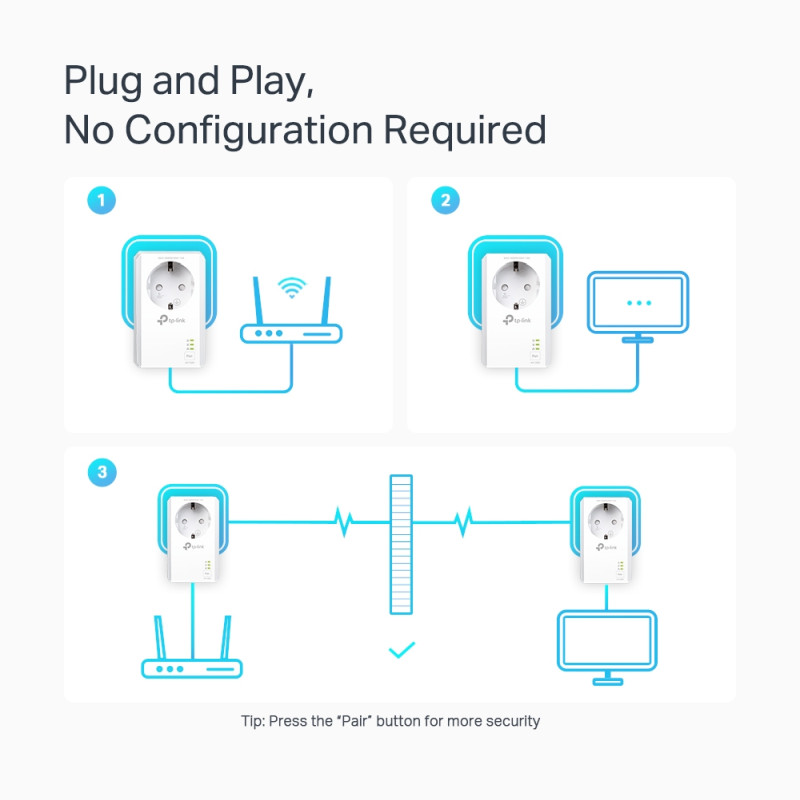 – Plug and Play – allows setup of your powerline network in minutes, so you can enjoy fast, seamless wired connections right away