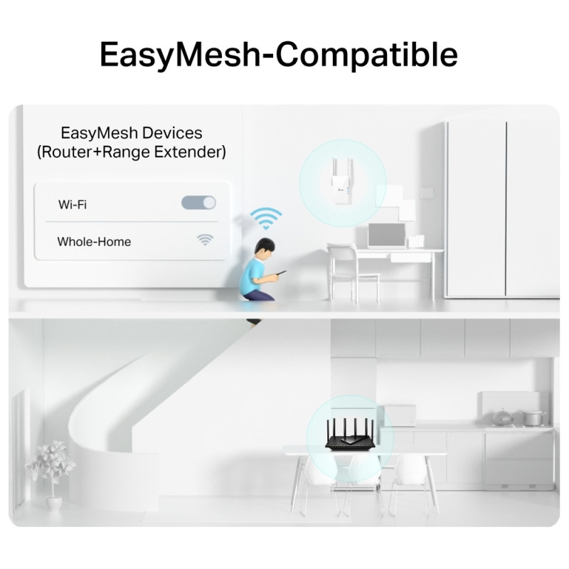 – RE505X comes equipped with the latest wireless technology, Wi-Fi 6, for faster speeds, greater capacity, and reduced network congestion