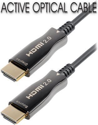 Transmedia C508-10M Active Optical HDMI 2.0 cable, 10m – Supports 4K@60Hz, YUV 4:4:4, 3D, HDR, HDCP 2.2 High-quality, high-gloss metal plugs Gold plated contacts Thin cable, only O 4,5 mm Min. bending radius 15 mm Ultra flexible, easy to install Consists of high-quality multimode fiber optic cables, Innovative digital optical converters integrated in the connectors On spool with colored information print In gift box The cable is unidirectional and therefore may not be connected to the wrong port (screen device). The plug ends are marked Display and Source .