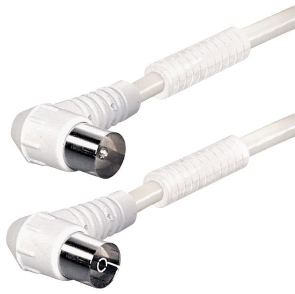 Transmedia FK1-ZHDW – Connecting Cable IEC plug right angle 9,5 mm- IEC jack right angle 9,5 mm, with absorbing ferrite 1,0 m inner conductor: 0,5 mm 1. screening: double coated Al-foil 2. screening: Al-braid 128 x 0,12 rolling size: min. 70 mm inner-O 85 dB, class A BZT No. KU 11 888 colour: white
