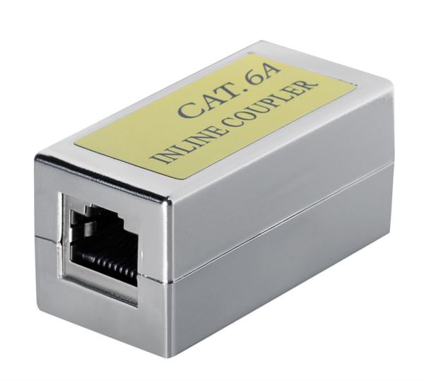 Transmedia Inline coupler TI 33, CAT 6A, metal casing, Western 8 8-jack to Western 8 8-jack, 1:1 connected