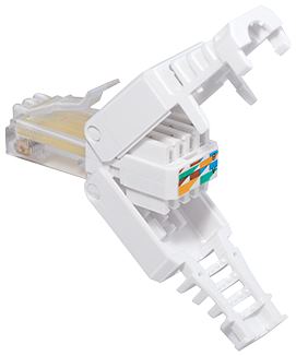 Transmedia TI 18 Q – Tool-less RJ 45 plug for CAT 5, CAT 6 UTP cables Assembling without tools For stranded and solid wires AWG 24 – 26 Max. cable-O 6,0 mm