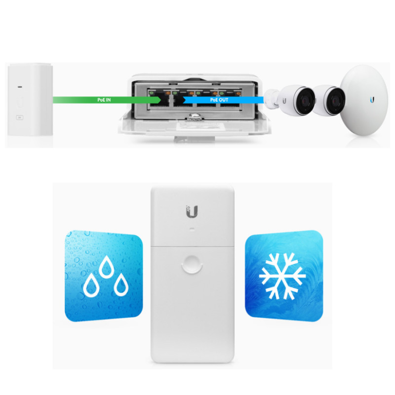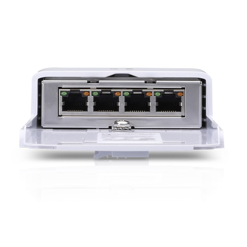 – Simply providing 24V 2-pair input makes NanoSwitch an outdoor 4-port unmanaged switch with “always on” 24V 2-pair output on three ports