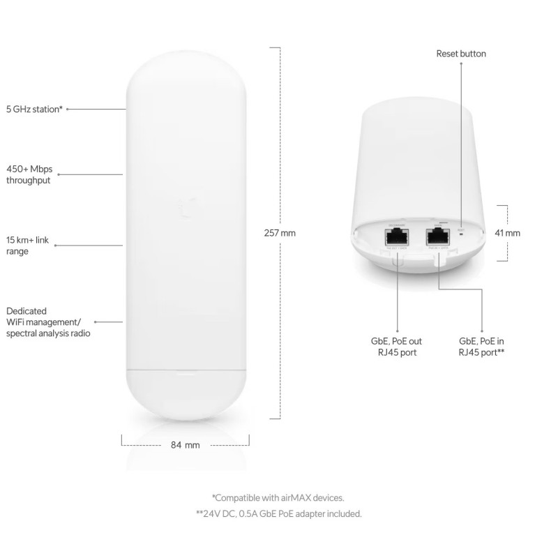 – UISP-supported WiFi radio designed for point-to-point and customer premises applications.