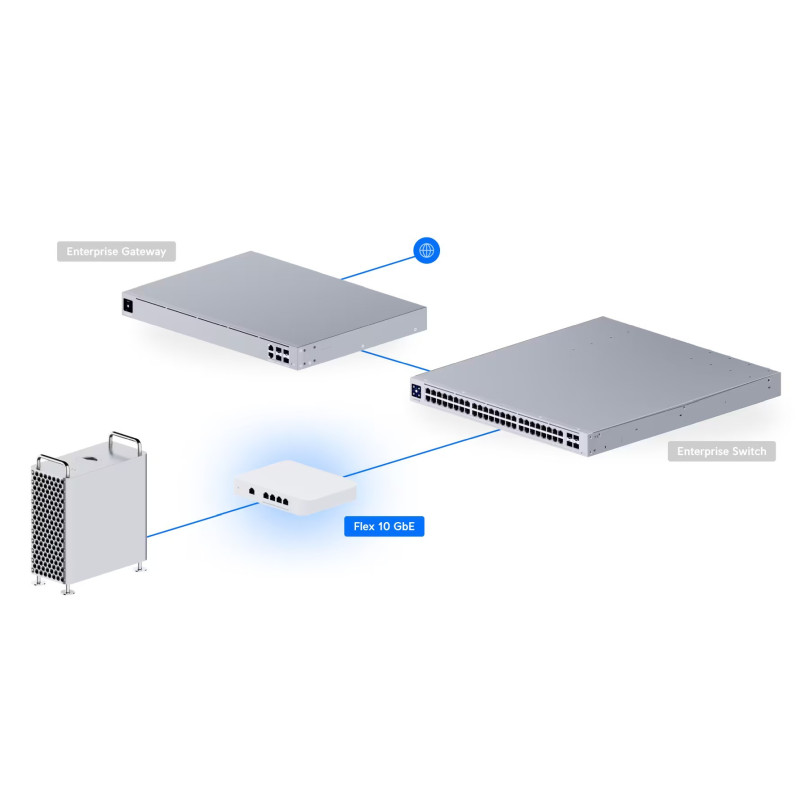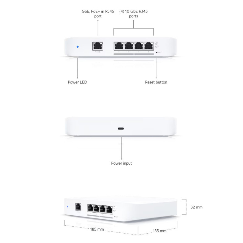 – A compact, 5-port, Layer 2 switch that supports 10 GbE speeds and can be powered with PoE or a 5V USB-C adapter.