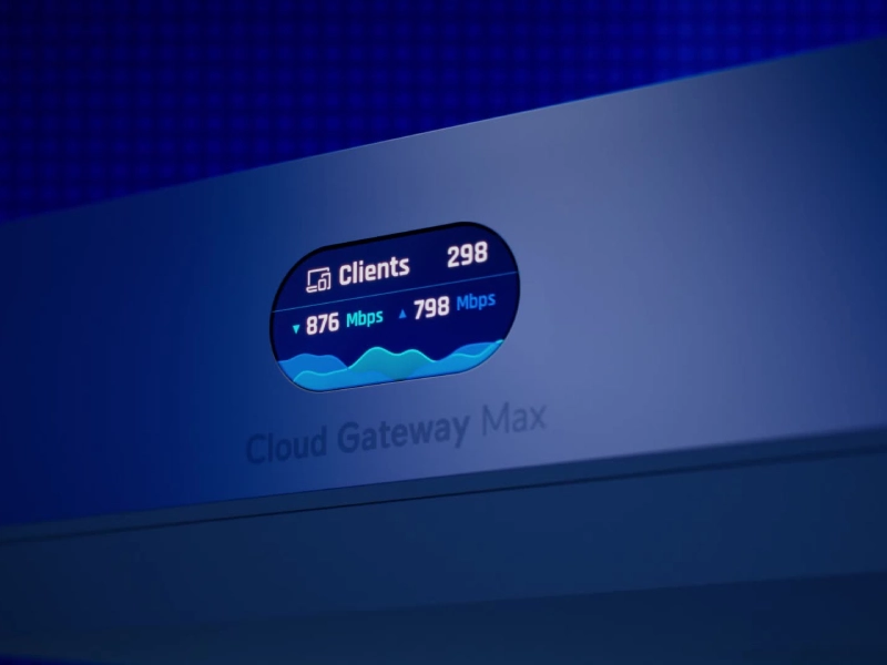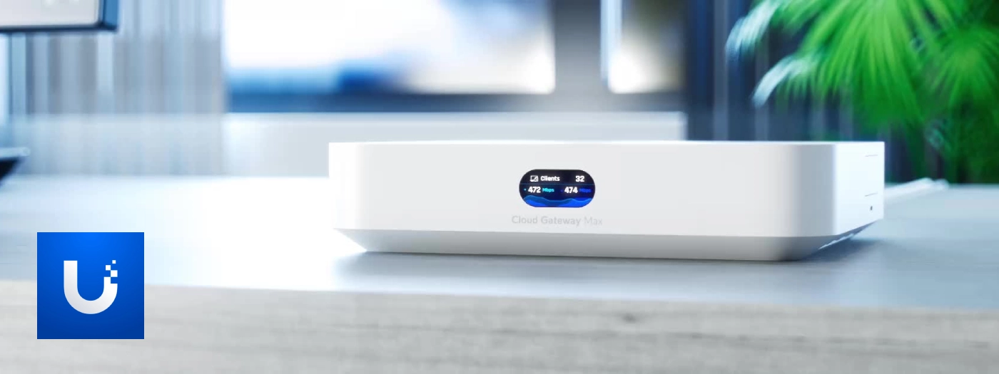 UBIQUITI UniFi Cloud Gateway Max, UCG-Max-EU; Network/Protect/Access/Talk/Connect; 300+ users; 30+ devices; 2.3 Gbps; (1) 2.5 GbE RJ45 WAN / (4) 2.5 GbE RJ45 LAN
