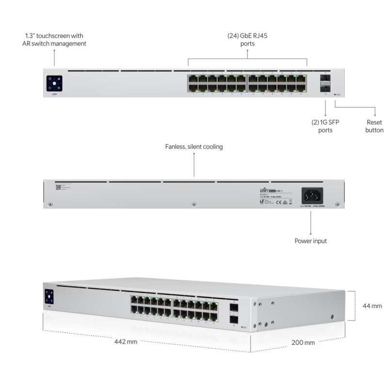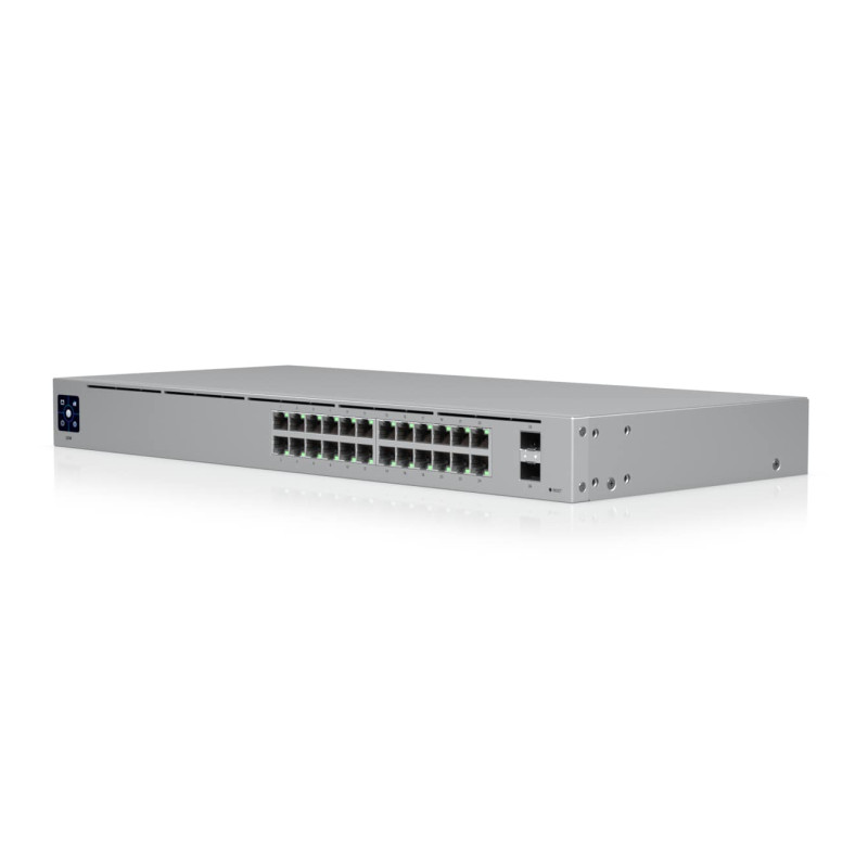 – The Switch 24 (USW 24) is a fully managed, fanless switch with (24) GbE RJ45 ports and (2) 1G SFP ports.