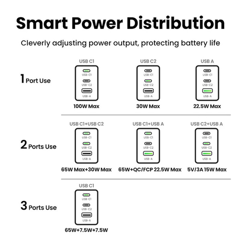 – Brzo punjenje 3 uređaja istovremeno s inteligentnom raspodjelom snage (do 100 W).