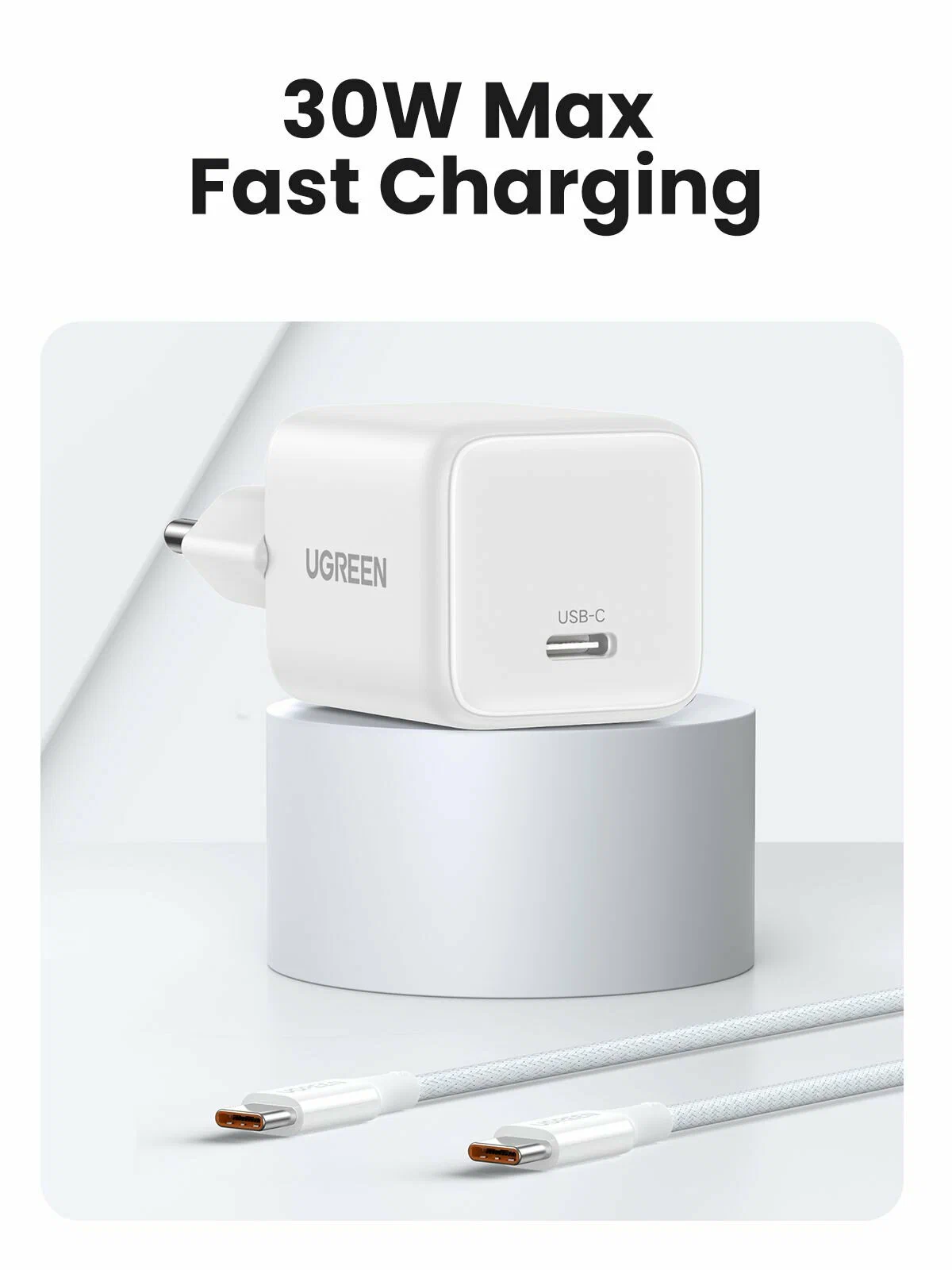 Kompaktan GaN USB-C punjač – 30 W: UGREEN 65013 (model X513) je svestrani punjač opremljen naprednom GaN II tehnologijom, koja omogućuje visoku učinkovitost i nisko zagrijavanje, a istovremeno zadržava ultra kompaktnu veličinu. Idealan je za brzo punjenje telefona, tableta, prijenosnika (manje snage) te drugih uređaja kod kuće, u uredu ili na putu.