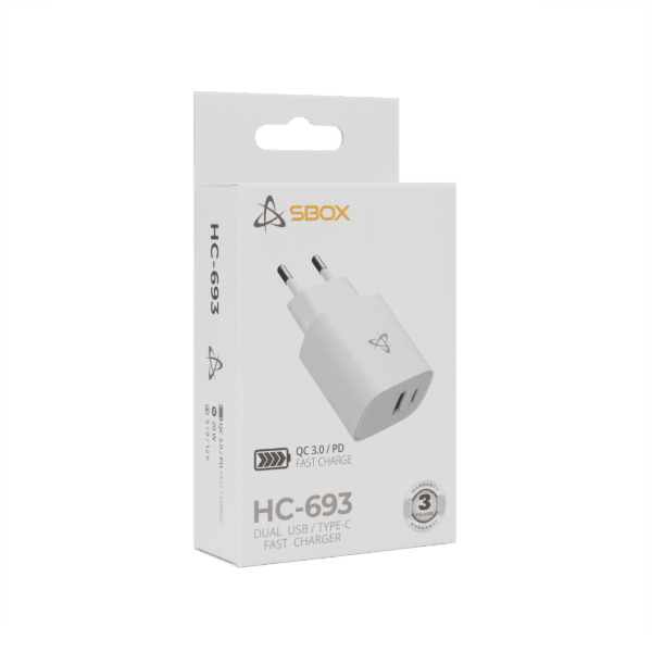 USB KUĆNI PUNJAC SBOX HC-693 / 2 ULAZA – 20W QC Bijeli