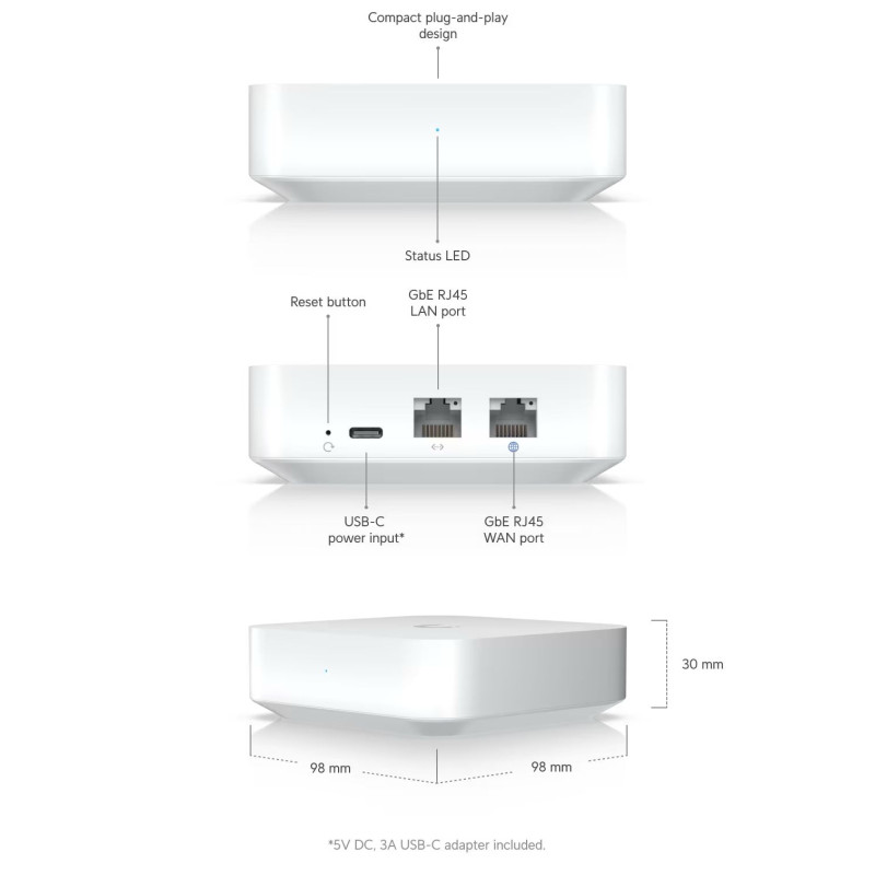 – A compact and powerful UniFi gateway with a full suite of advanced routing and security features.