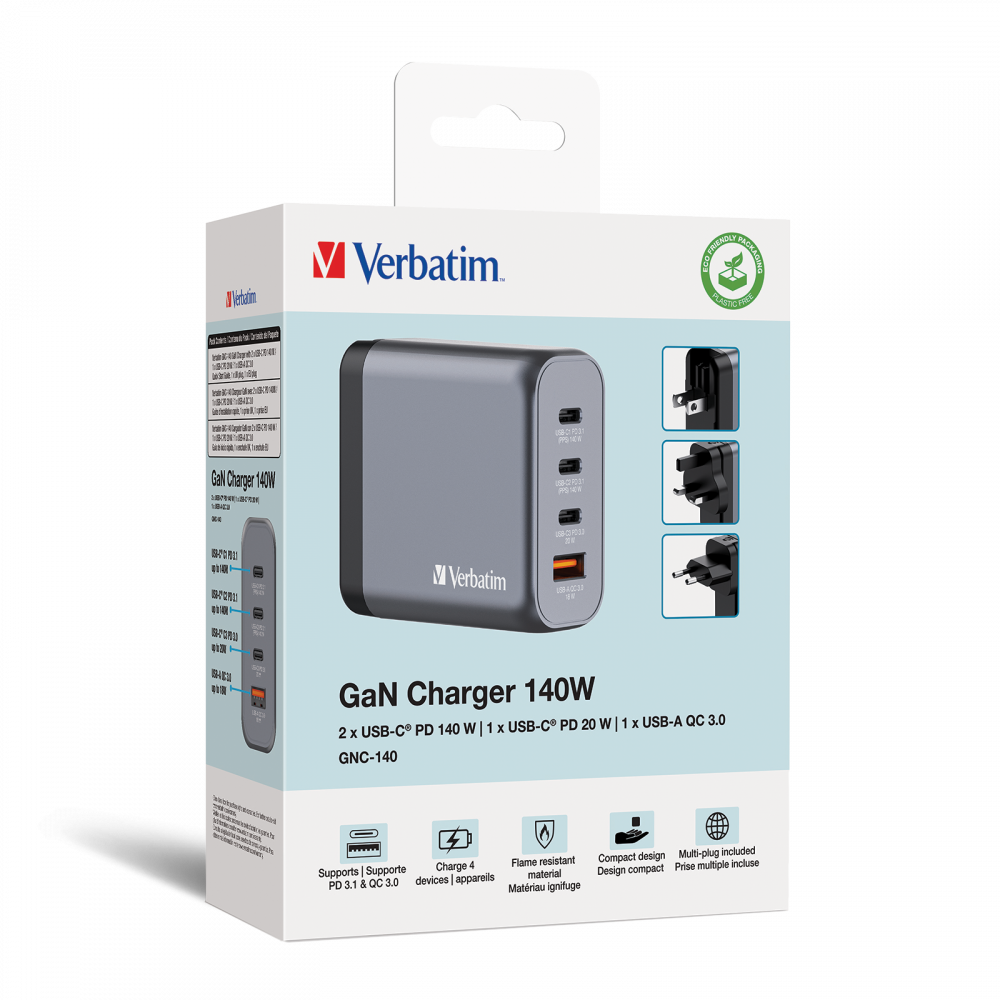 Opremljen s 2 x USB-C® PD 3.1 do 140 W, 1 x USB-C PD 3.0 do 20 W i 1 x USB-A QC 3.0 do 18 W