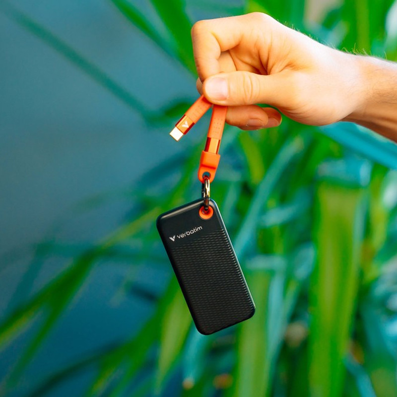 – The included keyring keeps your SSD securely attached to a belt loop or backpack. Even a set of keys! The thoughtfully design cable holder keeps the USB-C® Cable neatly stored and tangle-free. Perfect for travel.