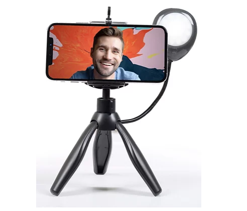 Idealno za konferencijske pozive i Vlogging u pokretu! Ovaj kompaktni i prijenosni Vlogging Tripod pokreću 2x AAA baterije i vaš je najbolji prijatelj kad ste vani. S repozicionirajućim držačem telefona i podesivim vratom svjetla.