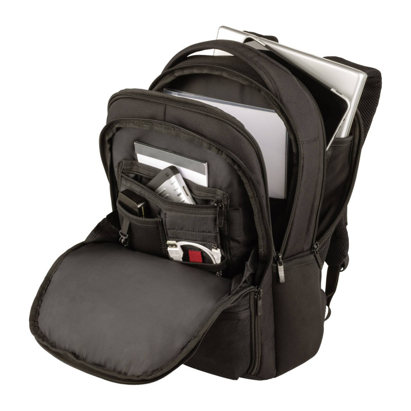 – Essentials organizer keeps power cords, chargers and business cards neat and accessible