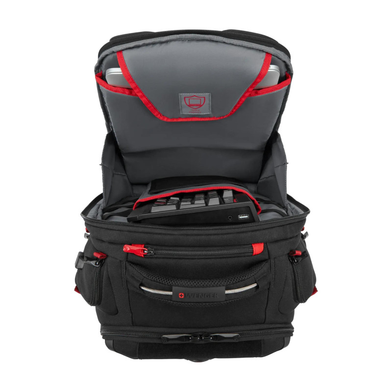 – Triple Protect padded laptop compartment with cooling mesh side panels holds a 17.3” gaming laptop