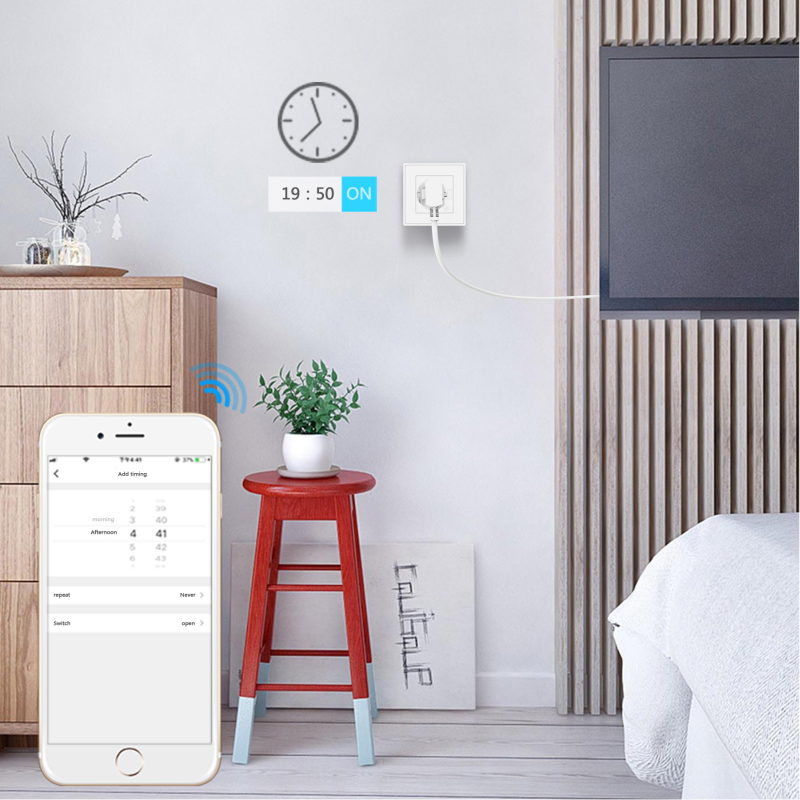 – Scheduling – schedule the smart wall socket to automatically power home appliance on and off as needed